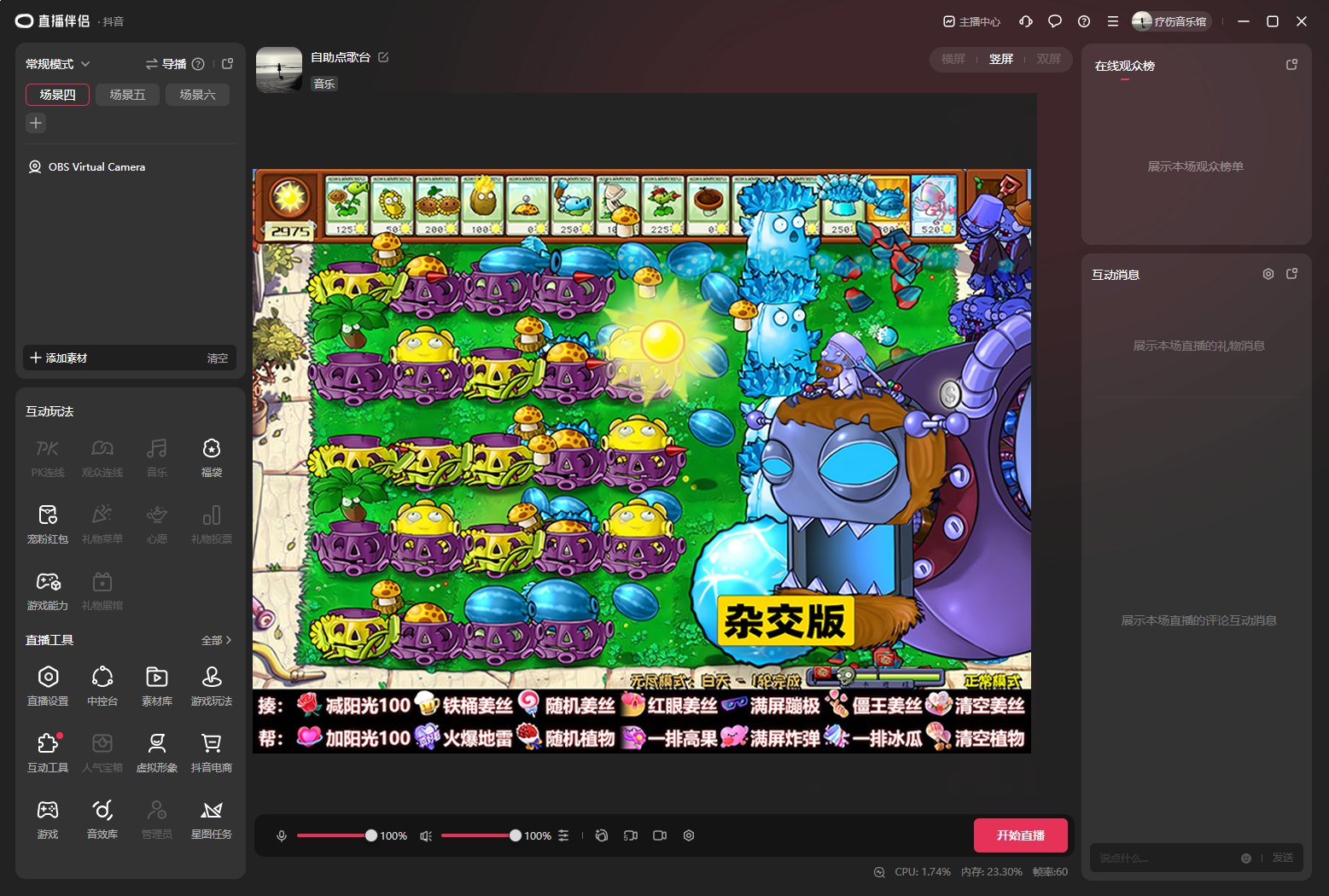 OBS直播教程:植物大战僵尸直播间如何搭建?